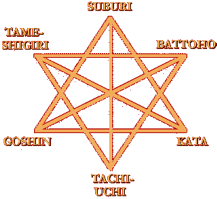 SUBURISchwertschwingübungen: Trainingsform, die Körper- und Schwertbewegungen miteinander in Einklang bringenBATTOHOKämpferische Form des Schwertziehens: Fünf Hauptmethoden des Schwertziehens folgen unterschiedlichsten Szenarien der kämpferischen Auseinandersetzungan deren Ende das Einstecken (Noto) der Waffe steht.KATADer alleinige Kampf gegen mehrere imaginäre Gegner:Übungsformen, die alleine geübt werden und alle Techniken in immer schwierigeren und fließenden Bewegungen verbindet.TACHI UCHIKomplexes System zum Erlernen des freien Kampfes in Form von PartnerübungenGOSHINSelbstverteidigung mit und gegen das Schwert:Die Gefahr eines Schwertes erkennen und dieses beherrschen - auch von der unbewaffneten Seite aus.TAMESHIGIRISchwertprobe oder auch Schnitttest:Erlernen und Überprüfung der Fähigkeit, mit einem scharfen Samuraischwert (Katana) schneiden zu können.